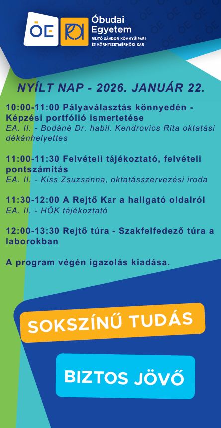 Nyílt napok - Óbudai Egyetem - Rejtő Sándor Könnyűipari és Környezetmérnöki Kar